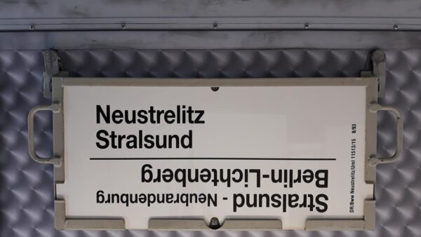 Stralsund-Berlin-Lichtenberg Startseite Zuglaufschilder Nahverkehr Nahverkehrszüge Stralsund-Berlin-Lichtenberg Vorheriger Zuglaufschild Neustrelitz-Stralsund Nächster Zuglaufschild Stralsund-Neustrelitz