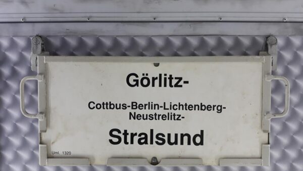 Stralsund-Görlitz Startseite Zuglaufschilder Nahverkehr Nahverkehrszüge Stralsund-Görlitz Vorheriger Zuglaufschild Görlitz-Berlin Nächster Zuglaufschild Görlitz-Stralsund
