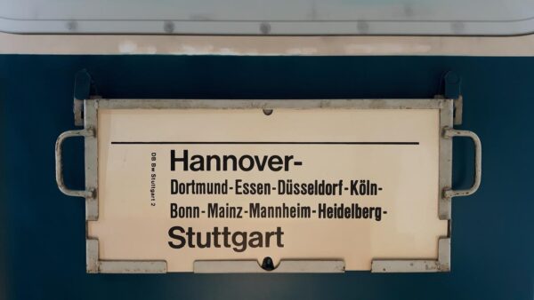 Stuttgart-Hannover Startseite Zuglaufschilder Fernverkehr D-Züge lange Strecke Stuttgart-Hannover Ein Behelfsschild, falls das passende Schild fehlt… Vorheriger Zuglaufschild Bad Bentheim-Berlin Hbf Nächster Zuglaufschild Hannover-Stuttgart