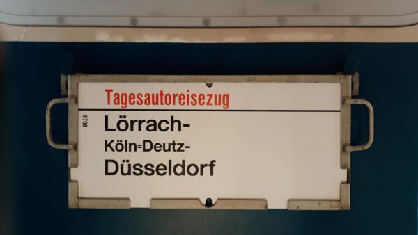 Tagesautoreisezug Düsseldorf-Lörrach Startseite Zuglaufschilder Fernverkehr Autoreisezüge Tagesautoreisezug Düsseldorf-Lörrach Wann war Lörrach Hauptstadt von Deutschland? Lörrach war schließlich 1848 drei Tage Hauptstadt der Deutschen Republik. Vorheriger Zuglaufschild Liegewagen Bourg St.Maurice-Frankfurt(M) Nächster Zuglaufschild Tagesautoreisezug Lörrach-Düsseldorf