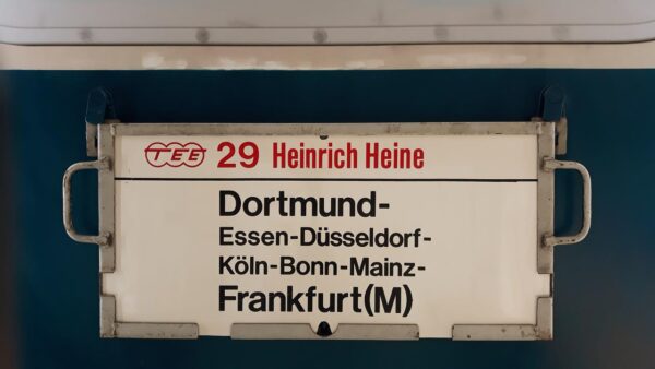 Nächster Zuglaufschild TEE 29 Heinrich Heine Dortmund-Frankfurt(M)