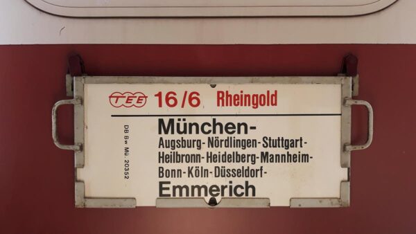 Der Wagen,der dieses Zuglaufschilder führte,wurde erst in Emmerich an den aus Amsterdam kommenden Zug angehängt.