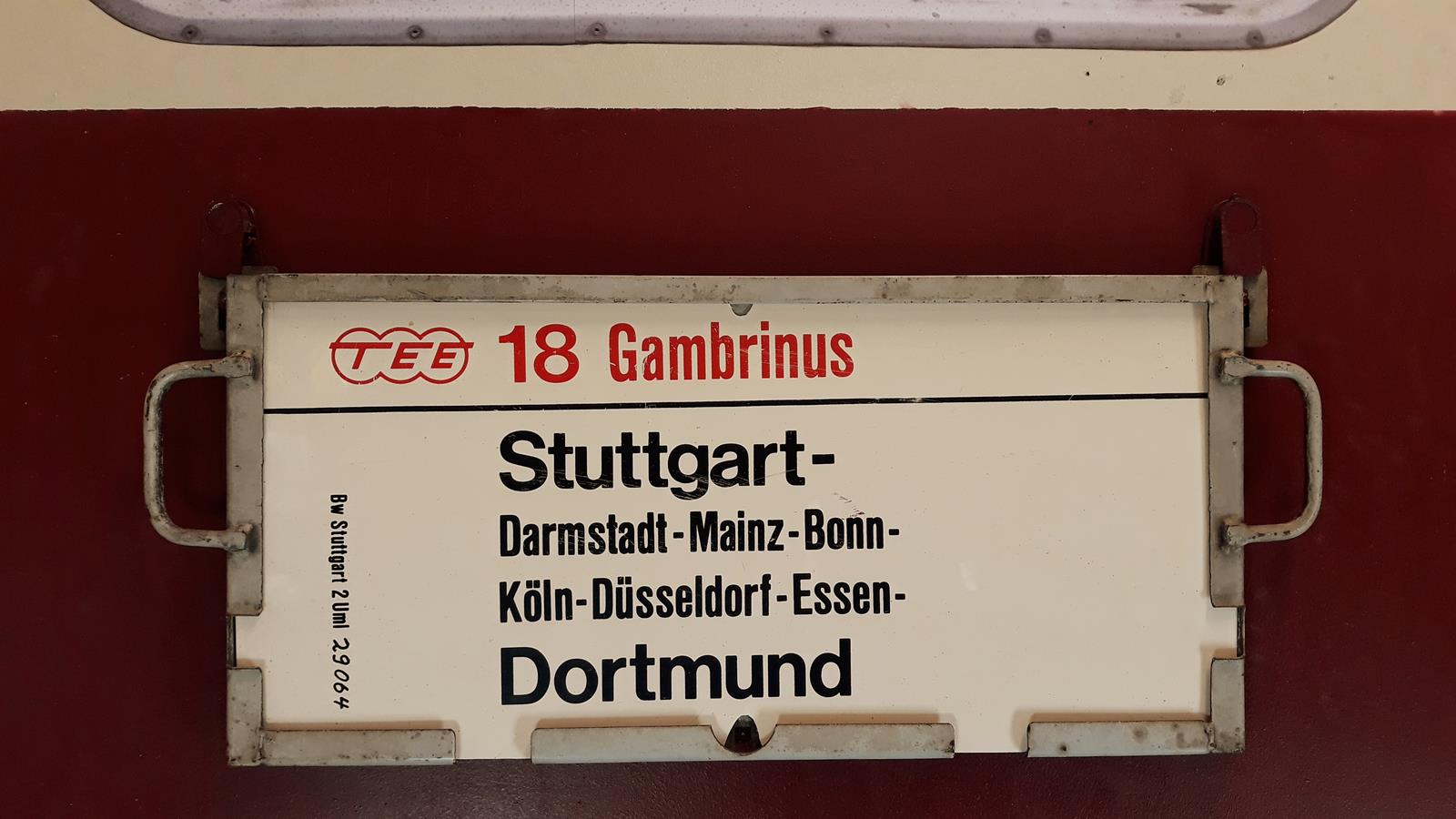 Startseite Zuglaufschilder Fernverkehr Trans-Europ-Express TEE 18 Gambrinus Stuttgart-Dortmund