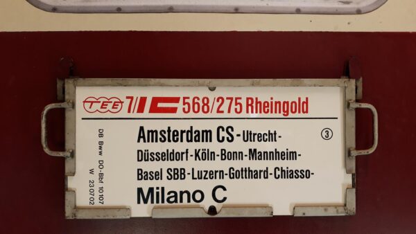 Vorheriger Zuglaufschild TEE 7/IC 568/275 Rheingold Amsterdam CS-Milano C