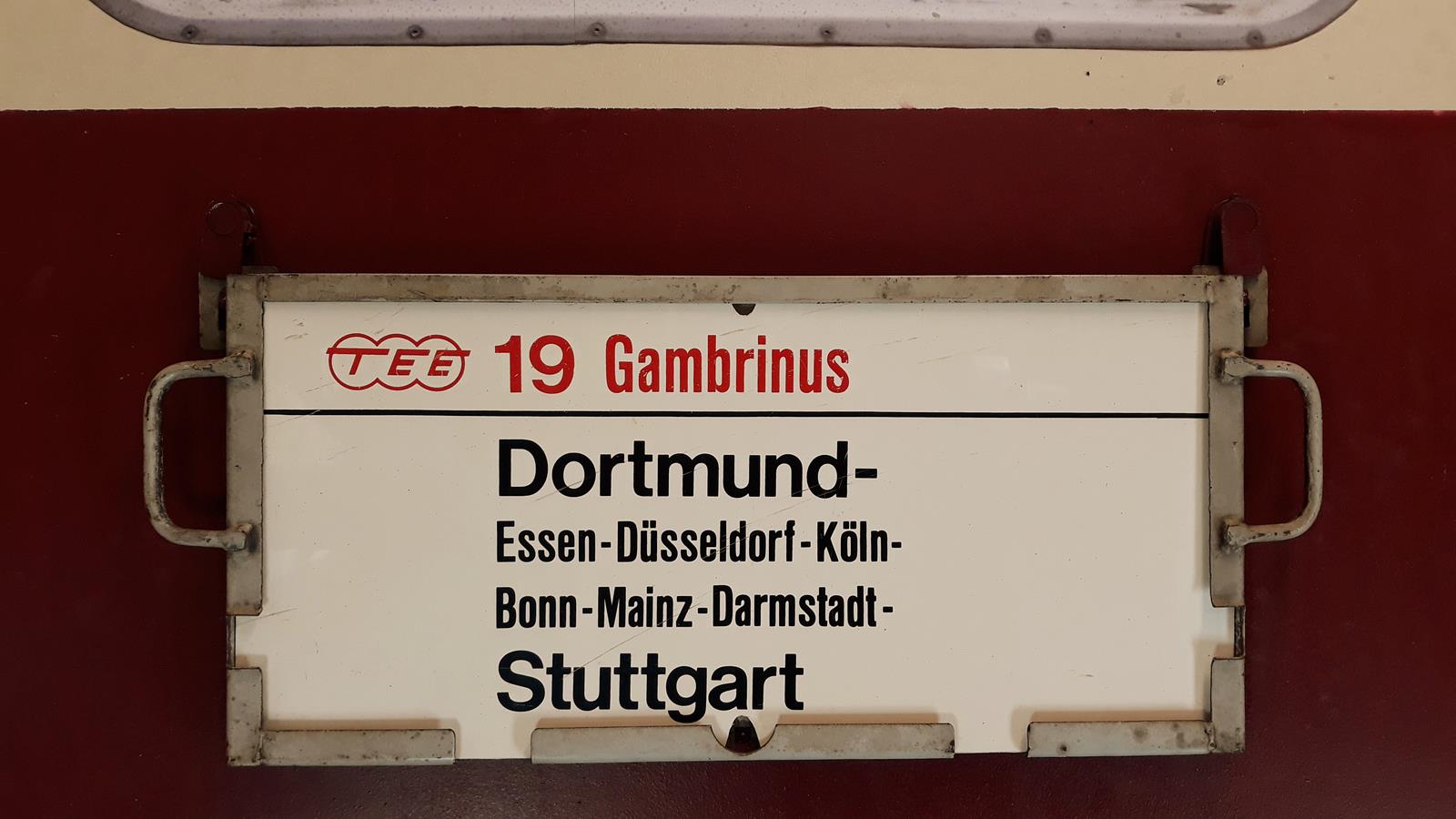 Startseite Zuglaufschilder Fernverkehr Trans-Europ-Express TEE 19 Gambrinus Dortmund-Stuttgart