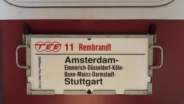 Nächster Zuglaufschild TEE 11 Rembrandt Amsterdam-Stuttgart