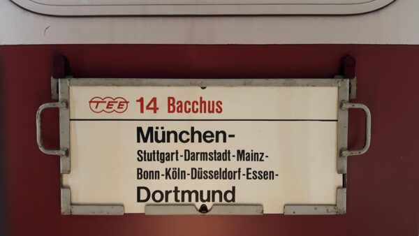 Vorheriger Zuglaufschild TEE 14 Bacchus München-Dortmund