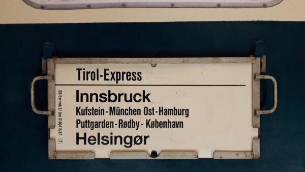 Tirol-Express Innsbruck-Hamburg Startseite Zuglaufschilder Fernverkehr D-Züge lange Strecke Tirol-Express Innsbruck-Hamburg Ungewöhnlich,das man bei dem Zuglaufschild auf den Zusatz“Altona“ verzichtet hat. Vorheriger Zuglaufschild EuroCity 7 Lötschberg Braunschweig-Basel Bad Bf Nächster Zuglaufschild Tirol-Express Innsbruck-Helsingør