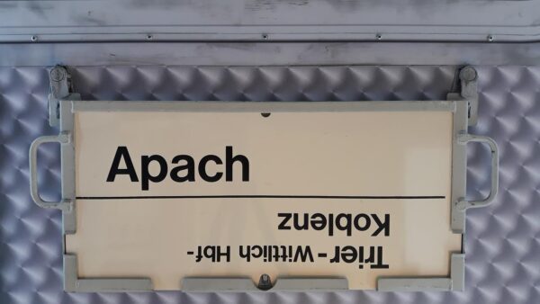 Trier-Koblenz Startseite Zuglaufschilder Nahverkehr Nahverkehrszüge Trier-Koblenz Vorheriger Zuglaufschild Apach Nächster Zuglaufschild Offenburg-Koblenz