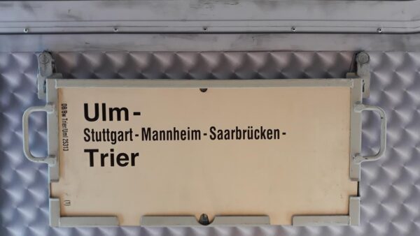 Trier-Ulm Startseite Zuglaufschilder Nahverkehr Nahverkehrszüge Trier-Ulm Ein Zug,gestellt vom Betriebswerk Trier. Vorheriger Zuglaufschild Ulm-Trier Nächster Zuglaufschild Trier-Thionville