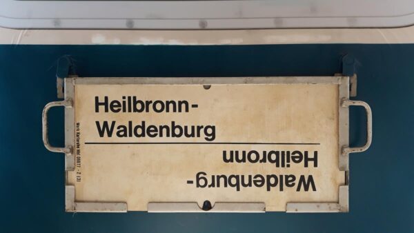 Waldenburg-Heilbronn Startseite Zuglaufschilder Nahverkehr Vier Ziele auf einem Schild Waldenburg-Heilbronn Das Betriebswerk Karlsruhe stellte diesen Zug. Vorheriger Zuglaufschild Heilbronn-Waldenburg Nächster Zuglaufschild Kaiserslautern-Heilbronn