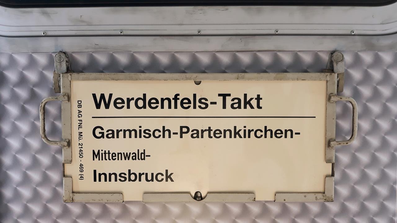 Werdenfels-Takt Garmisch-Partenkirchen-Innsbruck Startseite Zuglaufschilder Nahverkehr Werdenfels-Takt Werdenfels-Takt Garmisch-Partenkirchen-Innsbruck Ein grenzüberschreitender Zug nach Innsbruck. Vorheriger Zuglaufschild Werdenfelser-Takt Garmisch-Partenkirchen-München Nächster Zuglaufschild Werdenfels-Takt Uffing am Staffelsee-Garmisch-Partenkirchen