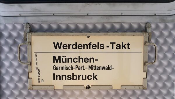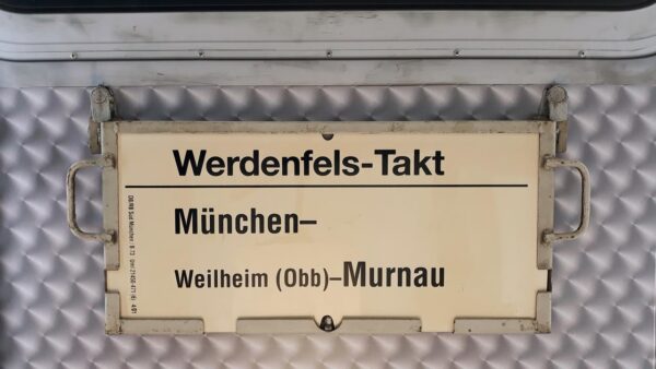 Werdenfels-Takt München-Mittenwald Startseite Zuglaufschilder Nahverkehr Werdenfels-Takt Werdenfels-Takt München-Mittenwald Ein Zug im damaligen Taktverkehr zwischen München und Mittenwald Vorheriger Zuglaufschild Werdenfels-Takt München-Murnau Nächster Zuglaufschild Werdenfels-Takt München-Innsbruck