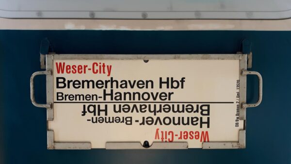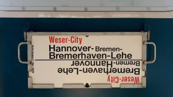 Vorheriger Zuglaufschild Weser-City Hannover-Bremerhaven-Lehe